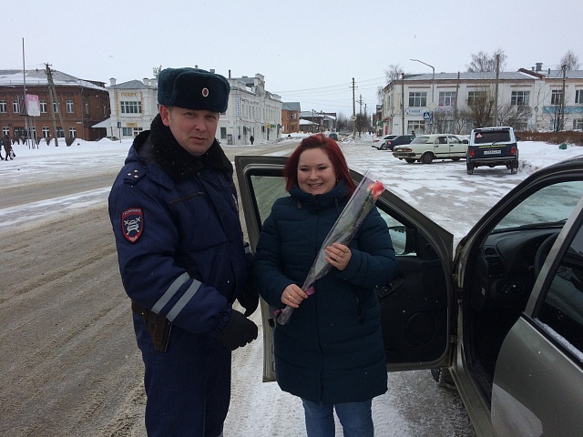 А 8 Марта поздравления с женским днем и цветы получили женщины водители. Сотрудники дорожно-постовой службы при содействии общественного совета при МО МВД России «Галичский» и совета ветеранов полиции «несли праздничное дежурство» в центре города, вручая весенние букеты женщинам за рулем и женщинам пешеходам. Инспекторы ДПС дарили цветы и улыбки, желали доброго пути и советовали соблюдать правила безопасности на дорогах.