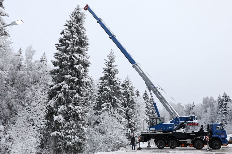 Уже не первый год в подъеме и погрузке главной елки страны принимает участие спецтехника «Галичанин». В этом году им стал автокран КС-65713-1 на базе шасси КАМАЗ-65201. Технические характеристика галичского силача помогли не только с легкостью поднять дерево высотой с девятиэтажный дом, но и сделать это в стесненных условиях: дерево росло максимально близко к дороге. Сближенный опорный контур машины помог успешно справиться с задачей.