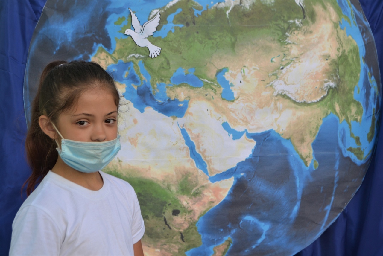 С надеждой, что мы всегда будем жить под мирным голубым небом, дети выпустили белых птах в интернет-пространство.