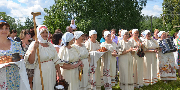 …Жаркий воскресный полдень. На древней челсменской земле собрались гости не только со всего района, но и из Костромы, Питера, Москвы. Девушки в русских сарафанах, мужчины в косоворотках, даже на детях народные костюмчики. Слышен гул веселых разговоров, пение, задорные заклички девчат, продающих озерную рыбу, звуки гармони, стук деревянных ложек и трещоток.