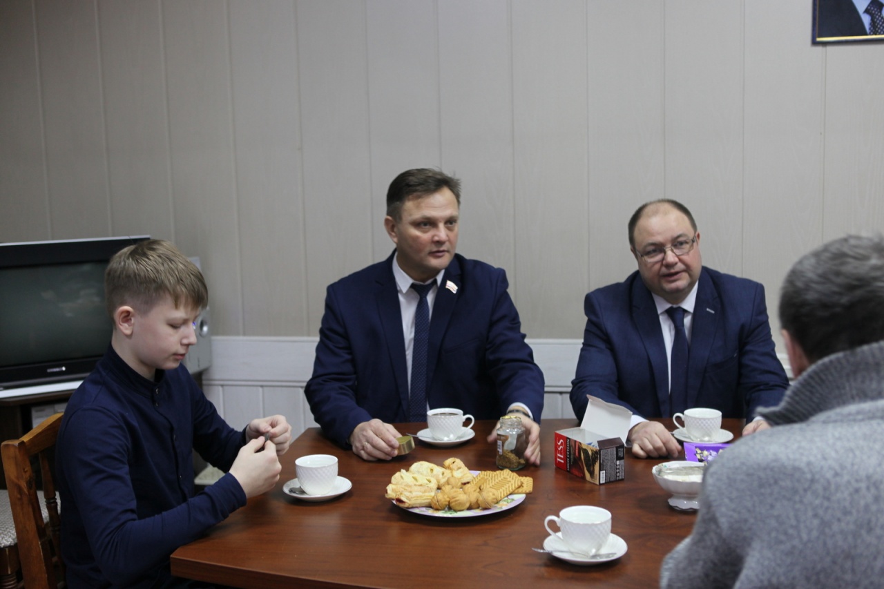 Под новый год в администрации города состоялась встреча главы Алексея Карамышева и депутата Костромской областной Думы, члена партии «Единая Россия» Александра Плюснина с военнослужащим, приехавшим в отпуск из зоны специальной военной операции.