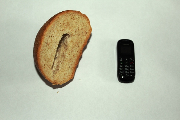 При досмотре сотрудники СИЗО обнаружили сотовый телефон и сим-карту, спрятанные в батоне белого хлеба. В отношении гражданина был составлен протокол об административном правонарушении. По закону ему грозит штраф в размере до 5 тысяч рублей.