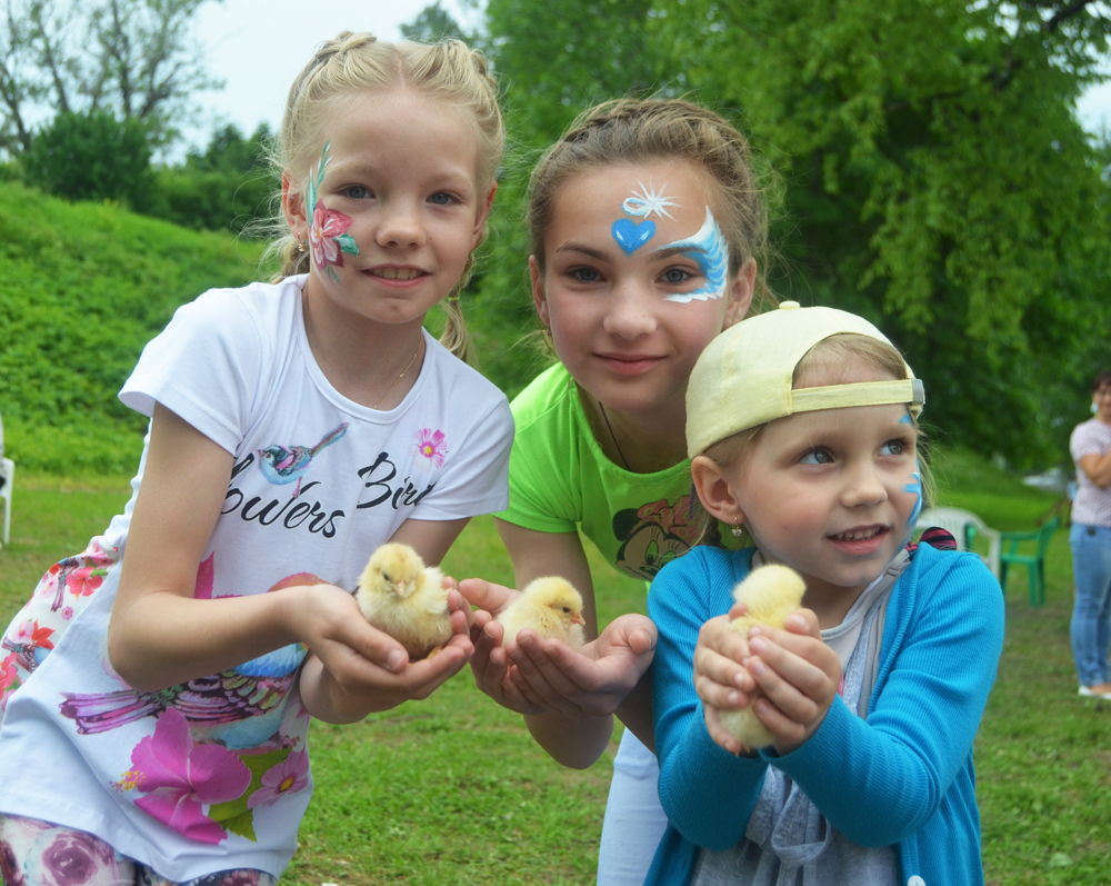 Работающие мастерские горшечников, чеканщика, художников вызвали неподдельный интерес, а наличие домашних животных привлекло детей даже лучше, чем обычное катание на лошадях, наверное потому, что лошади - животные большие, и погладить их, покормить травкой и листиками нельзя, тогда как подержать в руках жёлтый комочек теплого цыплёнка - ни с чем не сравнимое удовольствие.