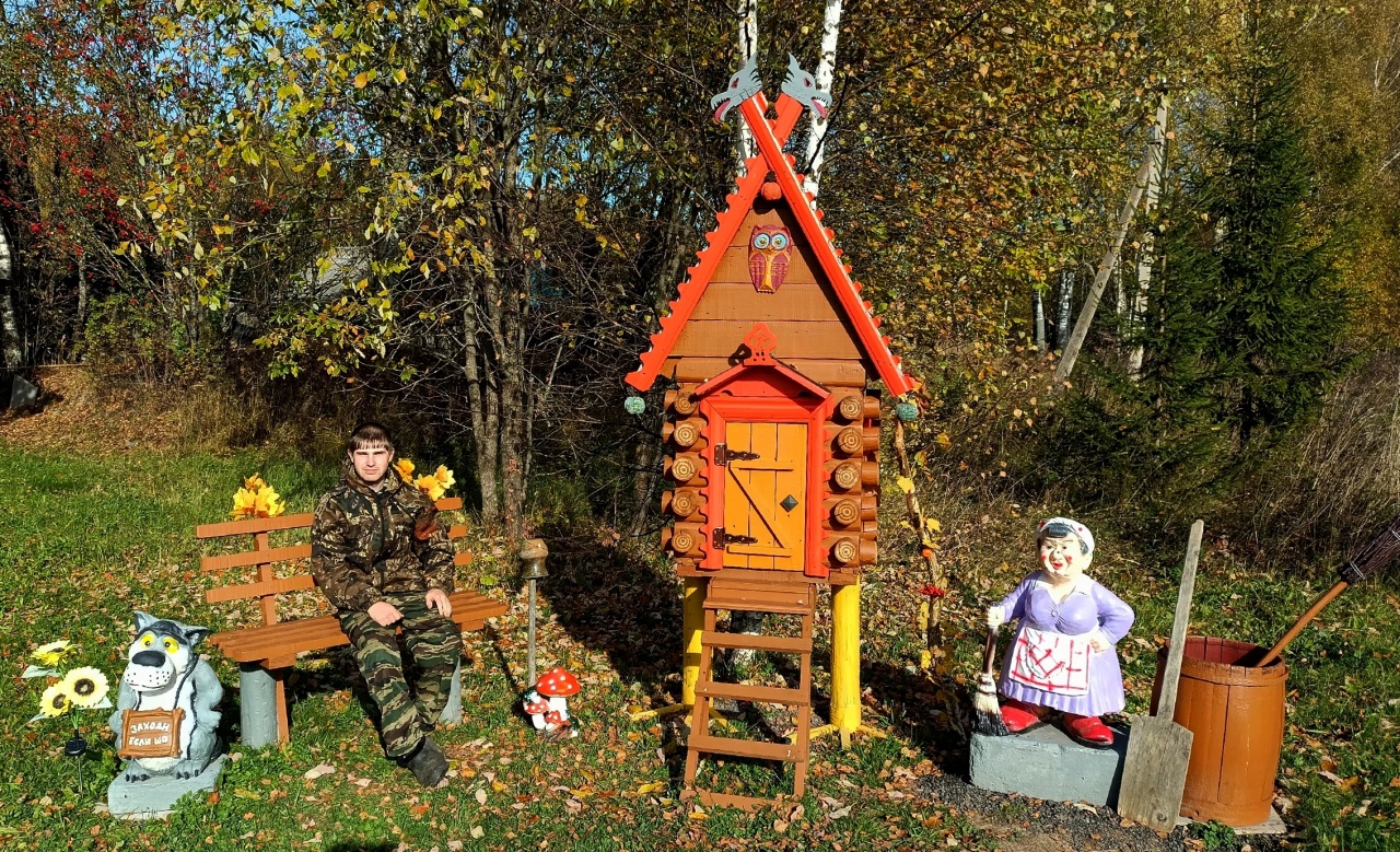«Строить начал весной, – делится Александр. – Сначала были эскизы, замеры, потом кропотливая обработка досок. К июлю сама избушка была готова. А дальше – дело за деталями: Бабу Ягу купил, а остальной декор собирал по всему дому. Печь смастерил из пенопласта – склеил блоки и расписал узорами. Отец помогал крышу крыть, а мама подобрать декор. Персонаж Бабы Яги выбрал неслучайно. В ней мудрость, таинственность и волшебство. Она – самый яркий персонаж русского фольклора».Теперь избушка Бабы Яги из Левково стоит и радует всех проходящих и проезжающих мимо людей, притягивает детвору и молодежь. Рядом с избушкой – скамейка, на которой можно отдохнуть с детьми, сфотографироваться.