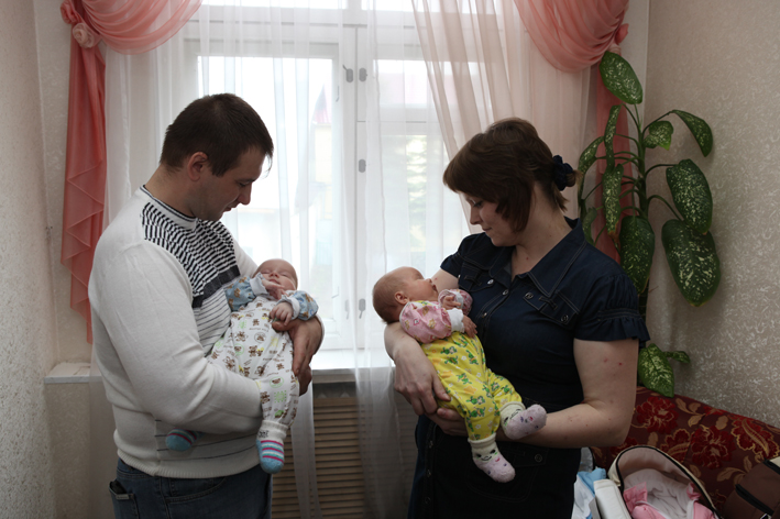 Василий Борисович поздравлял молодую семью не только как депутат и как руководитель предприятия, где работает мама, Татьяна Александровна. Вместе с своей супругой, Натальей Викторовной, они поздравили родителей Ивана и Софии как одни многодетные родители - других. В семье Татьяны и Сергея теперь пятеро детей. «Бог дал вам большую радость и возложил такую задачу, что только вместе и дружно можно с ней справиться. Ваша любовь и уважение - залог семейного счастья, в котором должны расти дети», - отметил, вручая подарок - мебель для кормления малышей, Василий Борисович. А ещё он пообещал семье материальную помощь от предприятия, так как пока мама в отпуске по уходу за детьми, доход семьи снизился, а расходы, с ростом членов семьи, увеличились.