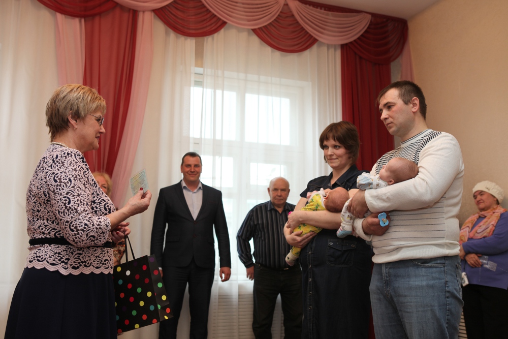 Раиса Ивановна Петрик поздравила семью от имени главы и администрации города, Владимир Михайлович Плетнёв - от руководства завода и трудового коллектива. Подарки для малышей передали магазин «Дочки-сыночки» (индивидуальный предприниматель Ольга Куликова) и отделение Пенсионного фонда.