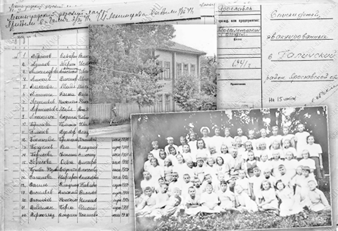 С 18 июля в городе была введена карточная система, нормы продуктов по которой неоднократно сокращались. Только три процента жителей Ленинграда погибли во время бомбежек, а 97 процентов умерли от голода. Весной 1942-го, как только появилась трава, жители города воспользовались ею для приготовления пищи, и за короткий срок растительности не осталось. Тех, кого смогли эвакуировать, отправляли в Ярославскую, Новосибирскую, Кировскую, Свердловскую, Вологодскую, Пермскую, Омскую, Актюбинскую области. В Государственном архиве Ярославской области хранятся списки детей и обслуживающего персонала, эвакуированных в 1941 году из Ленинграда в Галич и Галичский район. На пятнадцати листах аккуратным почерком скрупулезно записаны в графах фамилия, имя, отчество прибывшего, год и место рождения, пол, национальность, где жил и работал до эвакуации.