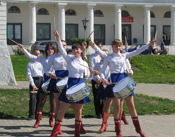 Праздничным и ярким выдался май. Ни одна неделя не обходится без мероприятий на площади города. Ярких, многолюдных, праздничных. Вслед за первомайскими демонстрациями, митингами, шествиями и концертами порадовали галичан и гостей города смотры-конкурсы с участием школьников города и района. На прошлой неделе удивляли слаженностью действий и точностью выполнения команд участники смотра-конкурса почётных караулов. Начало этой недели украсил традиционный смотр строя и песни, проводимый в свой юбилейный год Домом детства и юношества. Радовали глаз и форма и исполнение программы смотра-конкурса, и количество участников и прекрасная погода. Изюминкой мероприятия и так, привлекшего большое количество зрителей, стало выступление группы барабанщиц. Воспитанники Дома детства и юношества, занимающиеся под руководством Владимира Фёдоровича Брезгина, юные музыканты показали отличный уровень владения профессиональными инструментами, превратили своё выступление в шоу и порадовали всех присутствующих исполнением любимой многими музыкальной вариации из фильма «О бедном гусаре замолвите слово». Заслуженные аплодисменты подтвердили: у девушек есть все шансы быть любимцами горожан. Занимаясь ударными второй год, группа юных барабанщиц и двух горнистов уже имеют свой репертуар и планируют стать участниками всех выступлений нашего городского духового оркестра. Их руководитель Владимир Фёдорович уверен, что они готовы для сцены. Что и доказало их выступление. Увидеть вновь девушек с барабанами можно будет уже в начале июня на празднике в городском саду. Единственно, что недостаёт нашим барабанщицам, так это стильной формы участников парадов, надеемся, что город найдёт средства её приобрести. Впрочем, когда они выступали, слаженно шагая и перестраиваясь, мало кто обращал внимание на её отсутствие, ведь и в простых белых рубашках и юбках в складку они показали класс!