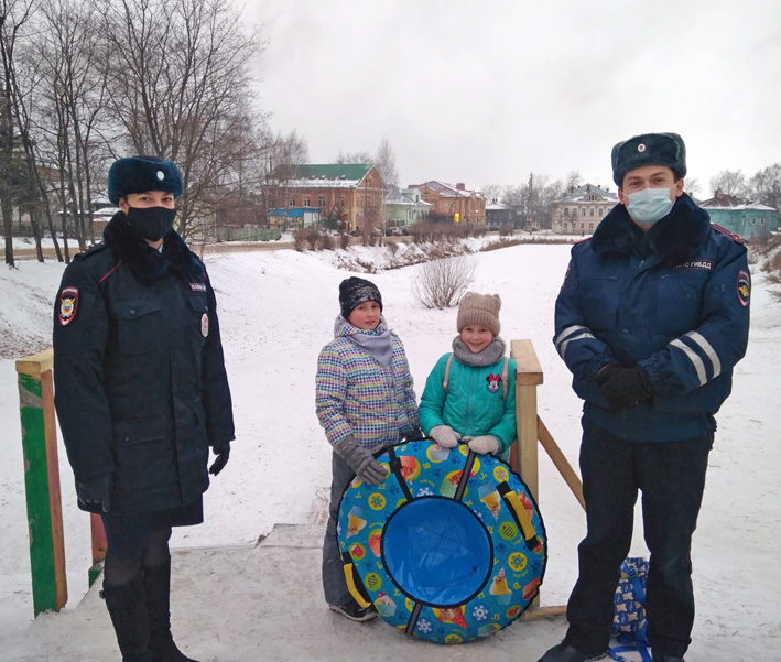 Одним из мероприятий акции «Каникулы под знаком безопасности» стал «Предновогодний патруль», который организовали сотрудники ГИБДД, ПДН и представитель уполномоченного по правам ребенка в Галиче. Возле горки на улице Свободы, напротив городского парка, участники мероприятия напомнили родителям с детьми и подросткам основные требования безопасности при катании на тюбинге, разъяснили, что использовать в качестве горок железнодорожные насыпи, лестницы и горки вблизи проезжей части дорог нельзя. Кроме того, для предотвращения ДТП с участием детей патруль обследовал городские валы на наличие мест выезда со снежных горок на проезжую часть.