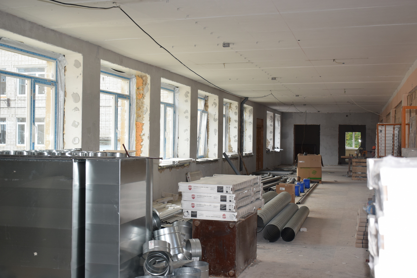 Основные усилия направлены на завершение ремонта в пищеблоке, с расчетом на то, что он сможет начать работу до полного исполнения контракта и сдачи готового объекта. Там подходят к концу процессы по установке вентиляции и электромонтажные работы. После финишной отделки будет установлено и подключено необходимое оборудование.