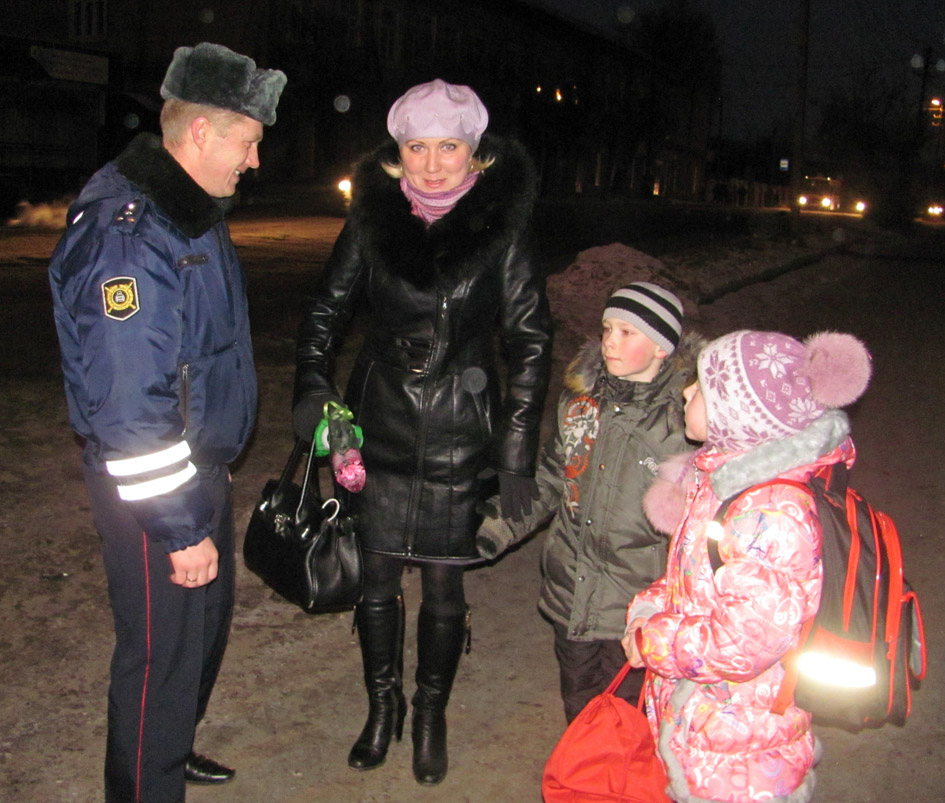 Старший инспектор ДПС лейтенант полиции Иван Голубев, инспектор ДПС лейтенант полиции Алексей Голубев, старший инспектор ДПС капитан полиции Владимир Евсиков и юные инспектора дорожного движения Дарья Кузьмичева и Ксения Плошкина (9 класс школы № 4) дежурили с букетами цветов(!). У пешеходного перехода возле детского сада № 7 они останавливали мам с детьми и поздравляли их с предстоящим праздником — Днем матери. Желая здоровья и безопасности на дорогах, они вручали женщинам цветы.