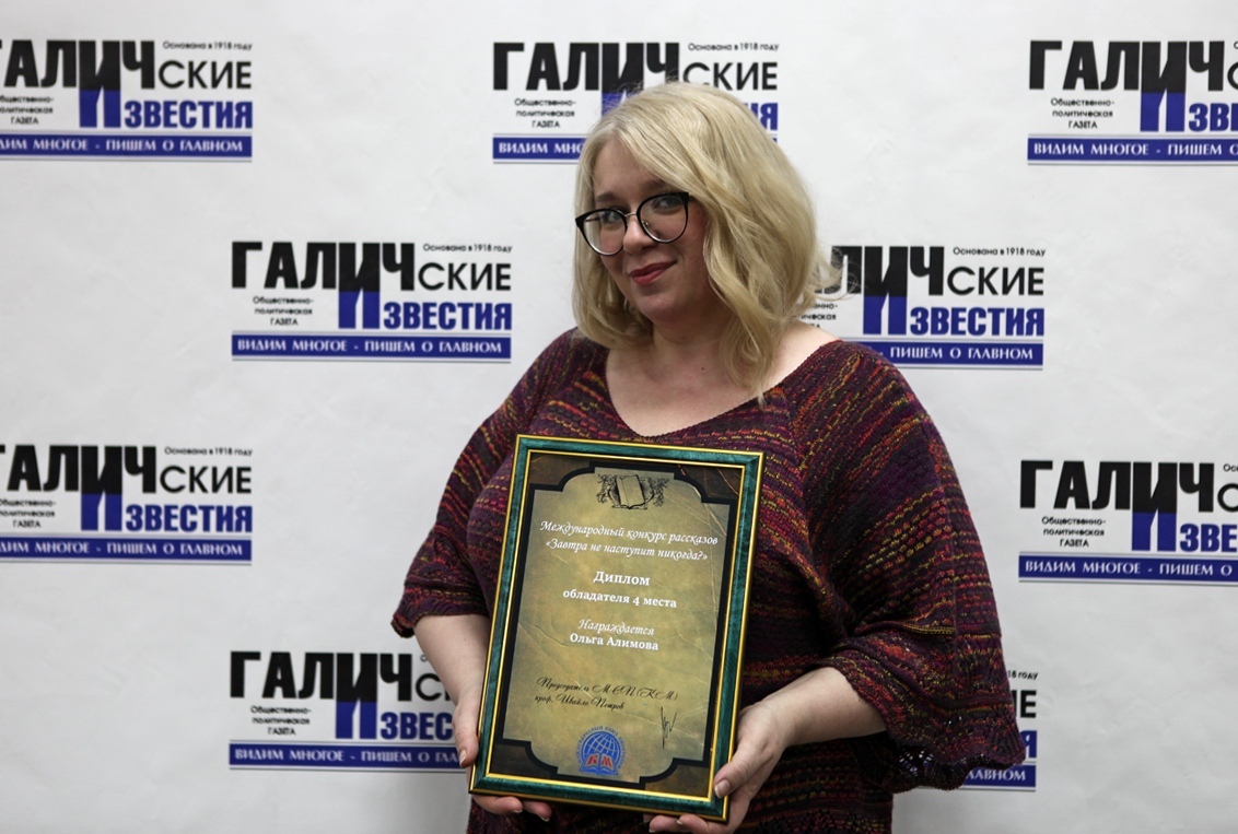 Для городских новостей мы находим время и в будни, и в праздники, а до своей собственной новости - руки не дошли. Теперь вот появился прекрасный повод исправиться: наш журналист Ольга Алимова вошла в число победителей международного литературного конкурса «Завтра не наступит никогда», который провел Международный Союз Писателей им. Св. Кирилла и Мефодия (Болгария).