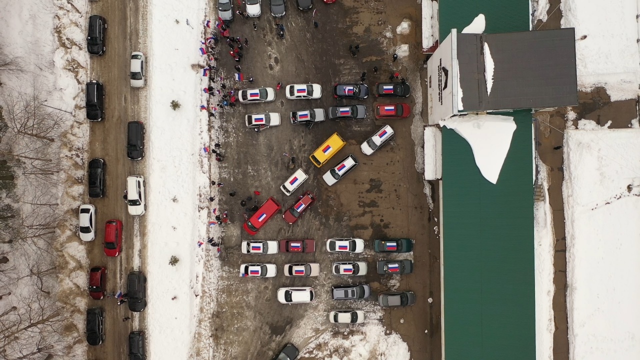Колонны встретились на площадке у костромского ипподрома, где прошла основная часть акции. Часть автомобилей составили символ специальной операции «Z» - «Zа мир». Остальные - вышли из машин и скандировали «Своих не бросаем» во время одноименной музыкальной композиции, которую транслировало «Радио России. Кострома», и которая стала гимном поддержки россиянами жителей Донбасса, российской армии и Президента.