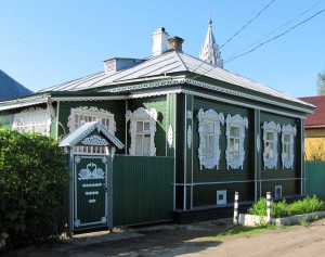 Как появилось это чудо человеческой мысли, что вдохновило мастеров на долгие поколения резных наличников на окнах и дверях домов, на изготовление деревянных кружев, украшающих даже стены деревянных построек, ворота, калитки и заборы? Пройдитесь по улицам старинных городов с фотокамерой — и можно за день собрать приличную коллекцию для фотовыставки. И если еще в прошлом столетии в это далеко не плотницкое, а поистине художественное искусство вкладывали какой-то особый смысл, если по отдельным фрагментам можно было угадать род занятий хозяев, их принадлежность к какому-то сословию, судить об их состоятельности, то сейчас наличники — это либо остатки выполненных около века назад оконных обрамлений в домах, сменивших не одних жильцов, либо новые, не содержащие информационной подоплеки, но очень красивые рамки, вензеля, а то и поистине витиеватые хитросплетения.Приятно заметить, что и современная молодежь старается сделать свое жилье отличным от других и все чаще прибегает к помощи специалистов по резьбе. Правда, дома с новыми наличниками у нас пока можно сосчитать по пальцам, особенно такие, что напоминают своим видом те, что мы видели в известных с детства фильмах-сказках. Словно сказочный терем стоит и этот дом на улице Набережной, неподалеку от Введенского кафедрального собора. Смотрит он своими окнами в белых кружевах на берег Галичского озера и на проходящих людей, не отводящих глаз от этого многообразия узоров на его голубых стенах. На калитке — белые лебеди на белых резных волнах — друг другу в глаза, видимо, символизируя семейное благополучие, мир и любовь в доме. Можно представить, с каким пристрастием обдумывали члены семьи свой проект по облицовке дома — потому-то он и получился таким нарядным и не похожим на остальные.