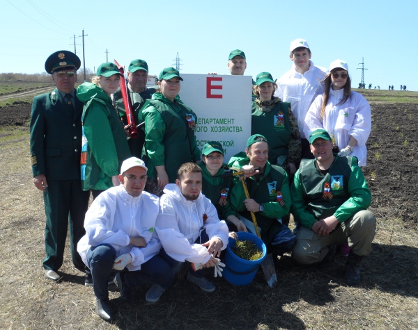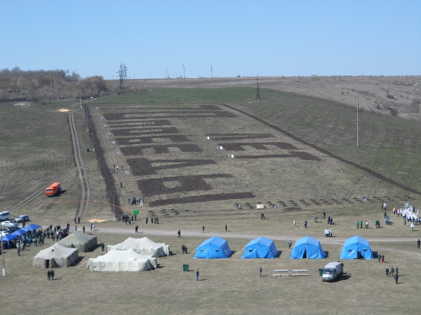 Сеянцы сосны были не только высажены в будущем лесопарке, из них сделана надпись «70-лет Победы!»
