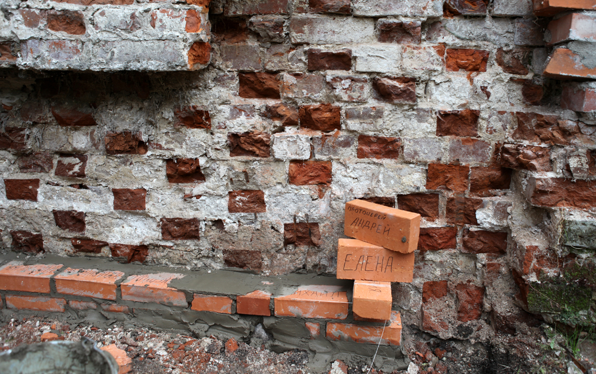… Ложатся крепкими рядками именные кирпичики в святую стену, ровным слоем штукатурки укрывает буквы легкий мастерок, делая имена невидными для людей. Но видит их Бог.
