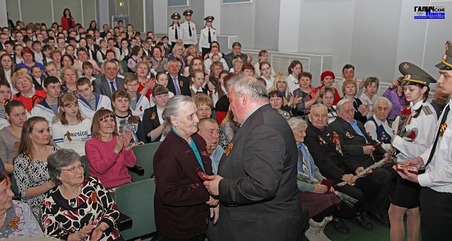 В один ряд сели наши фронтовики, узники концлагерей, жители Ленинграда... В один ряд... Им многим уже за девяносто... Губернатор, вручая награды, нашёл тёплые слова для каждого. Передавая медаль из рук старшеклассников, участвовавших в церемонии, в руки тех, кто в юности, в тяжелые сороковые встал на смену отцам и дедам, Сергей Константинович так же, как и наши ветераны, желал лишь одного, чтобы этим сегодняшним мальчишкам войны не видеть.