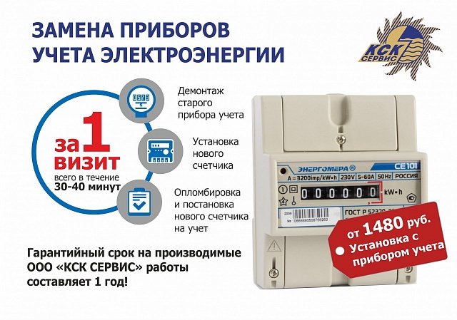 Cэкономить время и средства позволит комплексная услуга, которую оказывает партнер ПАО "Костромская сбытовая компания" — ООО "КСК СЕРВИС". Установку/замену индивидуального прибора учета электроэнергии (включая новый прибор), а также ввод его в эксплуатацию и составление всей необходимой документации мастер выполнит за один визит в удобное для клиента время. Комплексная услуга (прибор учета плюс работа по его замене) для жителей Костромской области обойдется всего в 1480 рублей.