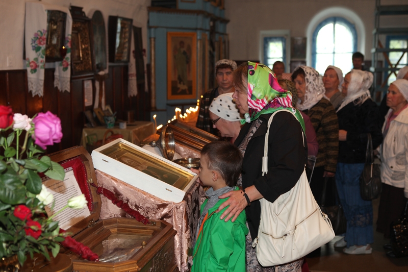 Яркой небесной синевой засияли купола над приделами храма. Но лучшим подарком для прихожан церкви Космы и Дамиана, для всех галичан стала возможность в эти праздничные для храма дни прикоснуться здесь, под его сводами, к великим православным святыням: четыре дня в церкви находились чудотворные иконы Святой блаженной Матроны Московской и Святителей Василия Великого, Григория Богослова и Иоанна Златоуста с частицами святых мощей. Доступ к ним был открыт с утра до вечера, и с утра до вечера не иссякал поток людей, идущих в храм.