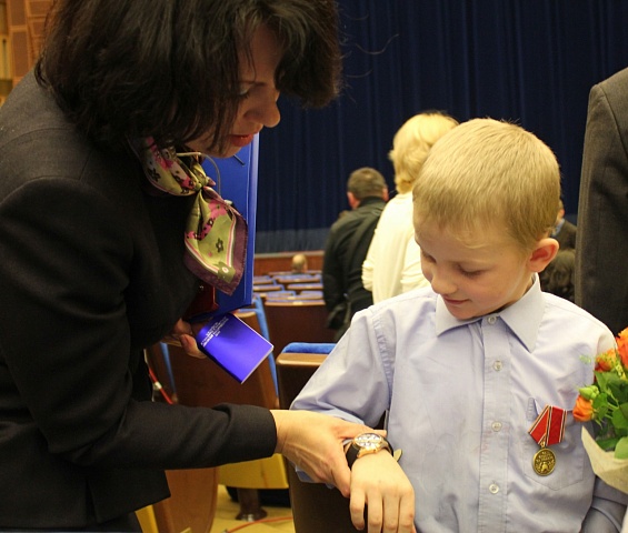 Алеша Бахарев из села Березовец награжден медалью «За отвагу на пожаре» и именными часами. Высокую награду маленький герой получил в Кремле. Приглашение на торжество и праздничный концерт, посвященный Дню спасателя России, Алеша вместе с мамой получили от министра МЧС России Владимира Пучкова. Пожар в Березовце случился этим летом. Узнав, что двое спасенных из пламени малышей жизнью обязаны старшему брату Алеше, руководство ФГКУ 2 ОФПС по Костромской области обратилось с ходатайством о вручении ему ведомственной награды. И вот в преддверии праздника — Дня спасателя Российской Федерации — на Кремлевской сцене, перед огромным залом прозвучала история о том, как шестилетний мальчик, не растерявшись, вывел из горящего дома маленьких брата и сестренку. Алеша, проявивший себя в опасной ситуации отважным героем, на огромной сцене в центре столицы оказался обычным деревенским мальчишкой: растерялся и очень смутился. Но подаркам, конечно, обрадовался. После награждения, уже сидя в зале рядом с мамой, признался, что поскорее хочет вернуться домой, чтобы рассмотреть, как следует, чем же его наградили. А еще сказал, что мечтает стать пожарным, чтобы помогать людям, попавшим в беду.В Березовец Алеша с мамой Юлей вернулись на следующий день: немного уставшие, пораженные огромной Москвой и красотой Кремля. Вернулись в свой отдельный дом. Семье погорельцев не надо больше ютиться у родственников: в Березовце им выделили муниципальную квартиру. Понемногу многодетная семья разжилась мебелью: что-то сами прикупили, что-то принесли односельчане, двуспальную кровать подарил Александр Плюснин, депутат Костромской областной Думы. За лето и теплую осень Юлия с мужем Василием сделали в новом жилье небольшой ремонт. Но в первую очередь, конечно, привели в порядок печи: они, увы, не понаслышке знают о том, как важна противопожарная безопасность.
