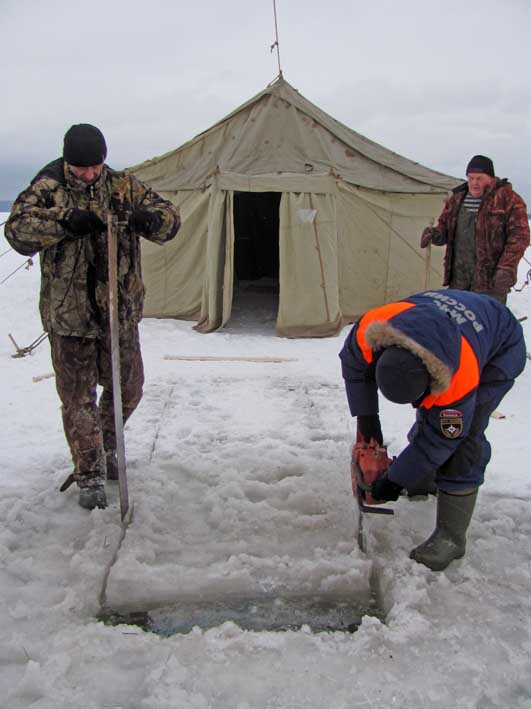 В этом году время купания в ней ограничено двумя днями. Погрузиться в крещенскую воду можно с 11 часов утра 18 января до 8 часов утра 20 января. Утром в воскресенье купель будет демонтирована. В нынешнем году оборудование купели на привычном месте - в 350-400 метрах позади Введенского храма - оказалось под вопросом. Крепость льда на озере сомнений не вызывала, но на заседании комиссии по предупреждению и ликвидации чрезвычайных ситуаций, посвященному вопросу обеспечения безопасности галичан при купании в период Крещенских праздников, сотрудники Галичского инспекторского участка по маломерным судам и Поисково-спасательного отряда обратили внимание членов комиссии на наслуд - смесь снега и воды на поверхности ледяного покрова.