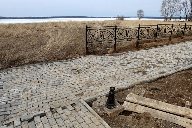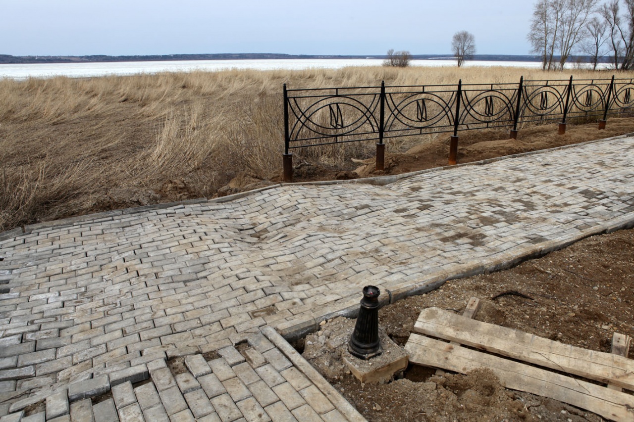 Сейчас грунт опустился на пятнадцать-двадцать сантиметров, что хорошо заметно по столбам ограждения. Его планируют подсыпать и укреплять, но земля ещё не оттаяла до конца и дождей не было, а значит, проседание может быть существенней. То же самое касается дорожек: те из них, что легли на твёрдую землю, стоят без видимых дефектов, те, на которых до этого шли работы, такие, как, например, прокладка кабеля, - провалились.