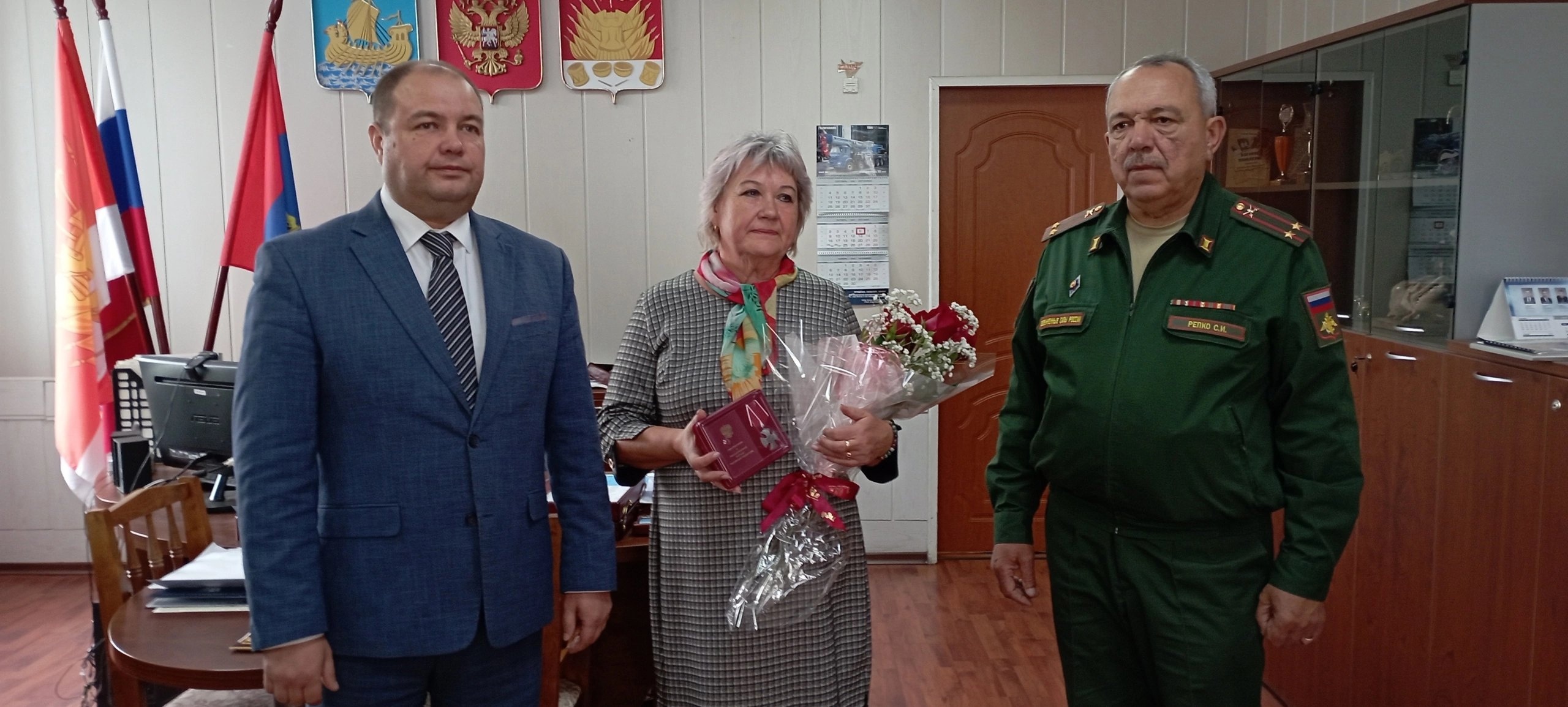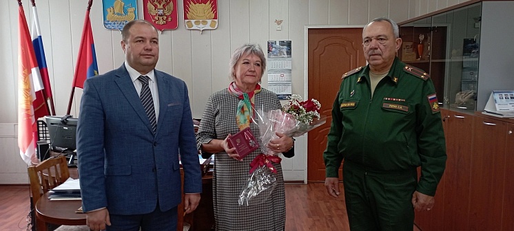 Глава города Алексей Карамышев и военный комиссар города Галича Сергей Репко со словами глубокого соболезнования и благодарности за воспитание сына передали награду на вечное хранение маме погибшего бойца - Ирине Николаевне.