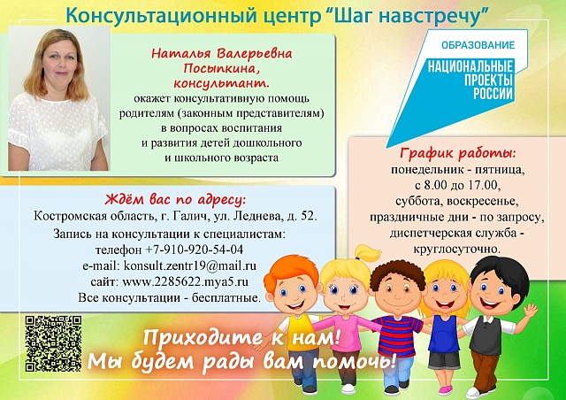 С 2019 года на базе детского сада № 8 города Галича функционирует Консультационный центр «Шаг навстречу», созданный при поддержке Федерального проекта «Современная школа» национального проекта «Образование».