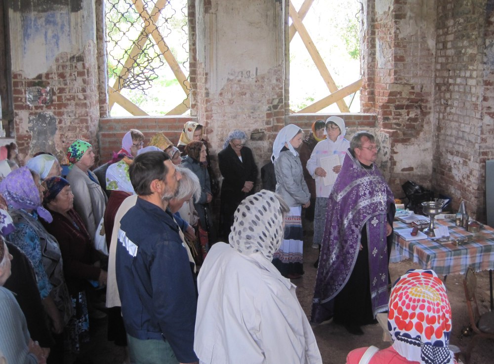 Местные жители с нетерпением ждут возрождения своего храма. Но уже в этом году, хоть нет в церкви ни окон, ни дверей, ни алтаря, здесь трижды были отслужены молебны. Не может быть пусто свято место на Руси!