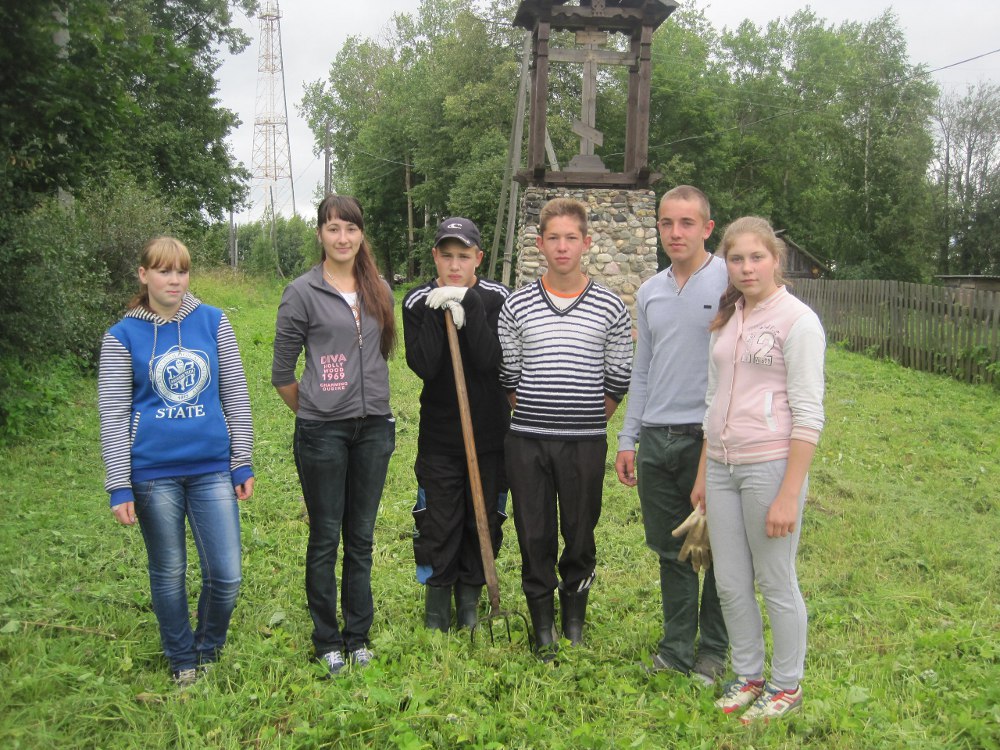 Наряду с профессиональными каменщиками и плотниками работают в храме местные школьники - участники трудового отряда молодежного центра «Истоки» под руководством Анны Лавровой.