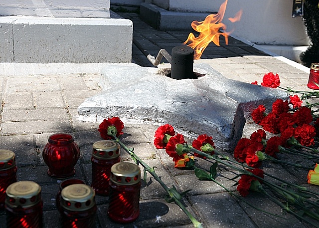 Участники церемонии возложили живые цветы, венки и мерцающие свечи памяти к вечному огню.