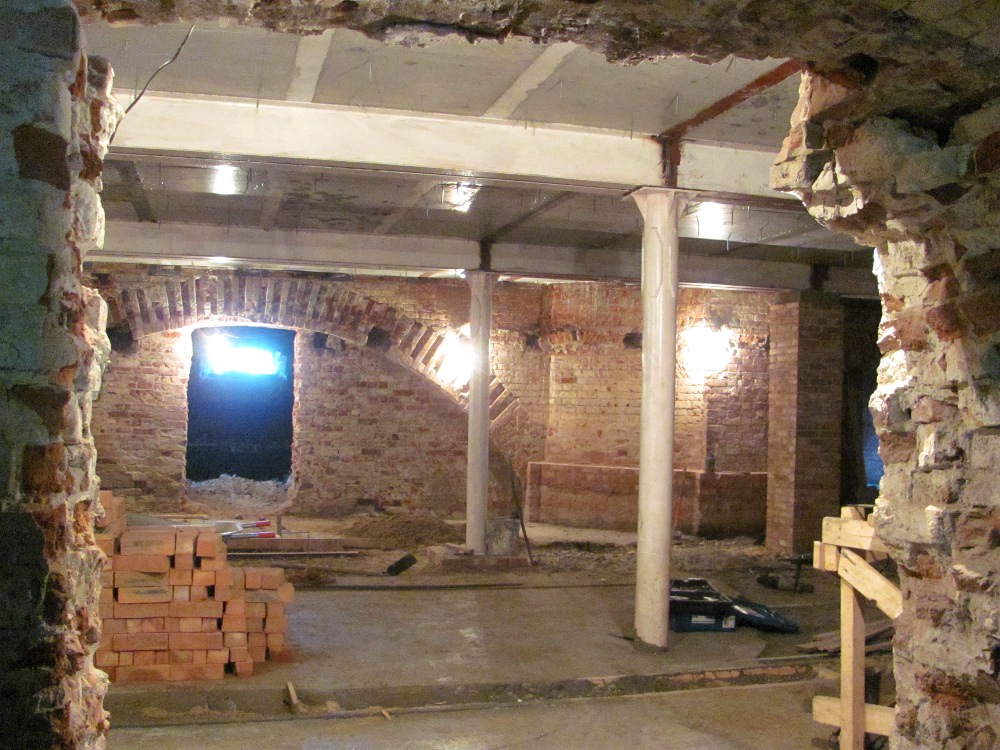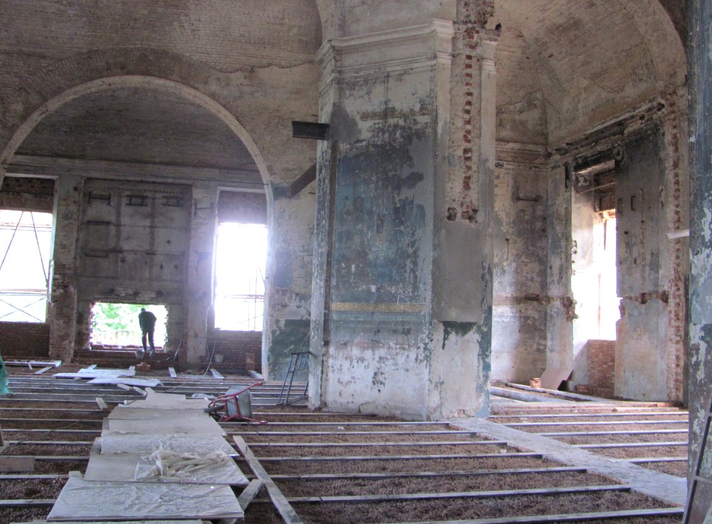 В центральном пространстве храма столько воздуха и света, что замирает сердце. Высокие своды, большие оконные проемы и простор, не раздробленный перегородками, делают помещение огромным. Сейчас мастера ООО «Лайм-парк» делают пол. Перекрытия между цоколем и первым этажом храма установлены, покрыты слоем керамзита для теплоизоляции. В ближайшее время начнется укладка чистового пола из плитки.