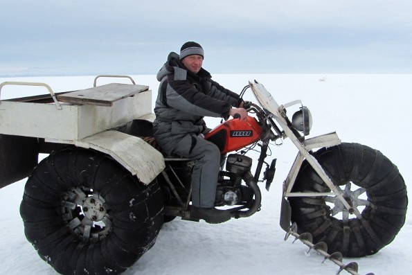 История рыбака Владимира похожа на истории предыдущих героев материала, рыбачит лет с трех, тоже начинал с отцом. На рыбалку ходит круглогодично, чередуя ее с охотой. Рыбу любит ловить в основном хищную, лодка и мотор в наличии много лет, периодически обновляет парк, шагая в ногу со временем. А зимой передвигается на раритете, самодельном трицикле на базе ИЖ-Планета-5, собранном лет 20 назад в гараже с друзьями.