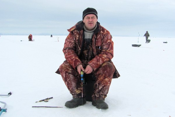 Всех троих я застал 7 марта на озере, в разных местах и в разное время. Напомню: третье место поделили Владимир Мариничев и Андрей Носов, вторым был Юрий Смирнов, а лучшим рыбаком был назван Владимир Бахвалов.Владимир Бахвалов (индивидуальный предприниматель) — с ним я знаком почти 20 лет. В любое время года он рыбачит, и никакая погода-непогода его не пугает. К моему удивлению, к рыбе он относится равнодушно, а рыбалку воспринимает как развлечение, отдых. Еще дошкольником с отцом ходил, а в младших классах стал самостоятельно бегать, удилище вырубал сам, приходилось и крючки гнуть из швейных иголок, хорошо, мать швея, и проблем не было. Из ивовых прутьев «стулики» плели, поплавки из пробок от шампанского и из гусиного пера делали.