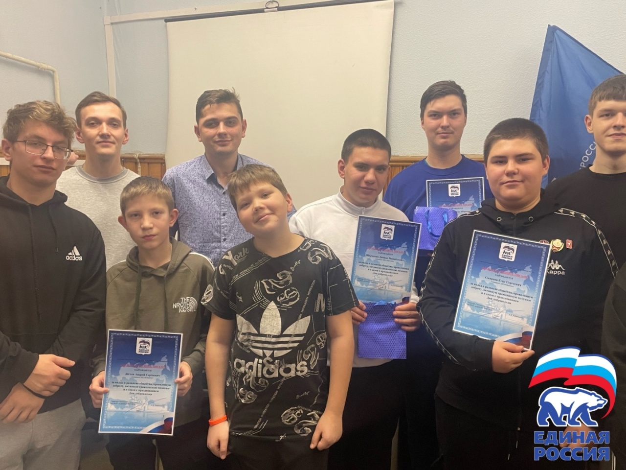 В знак признания заслуг и активной гражданской позиции Благодарственными письмами и памятными подарками от местного отделения партии «Единая Россия» были награждены самые активные добровольцы: Владислав Удалов, Егор Смирнов, Вероника Смирнова, София Бойченко, Андрей Дегтев, Даниил Шаряпкин.