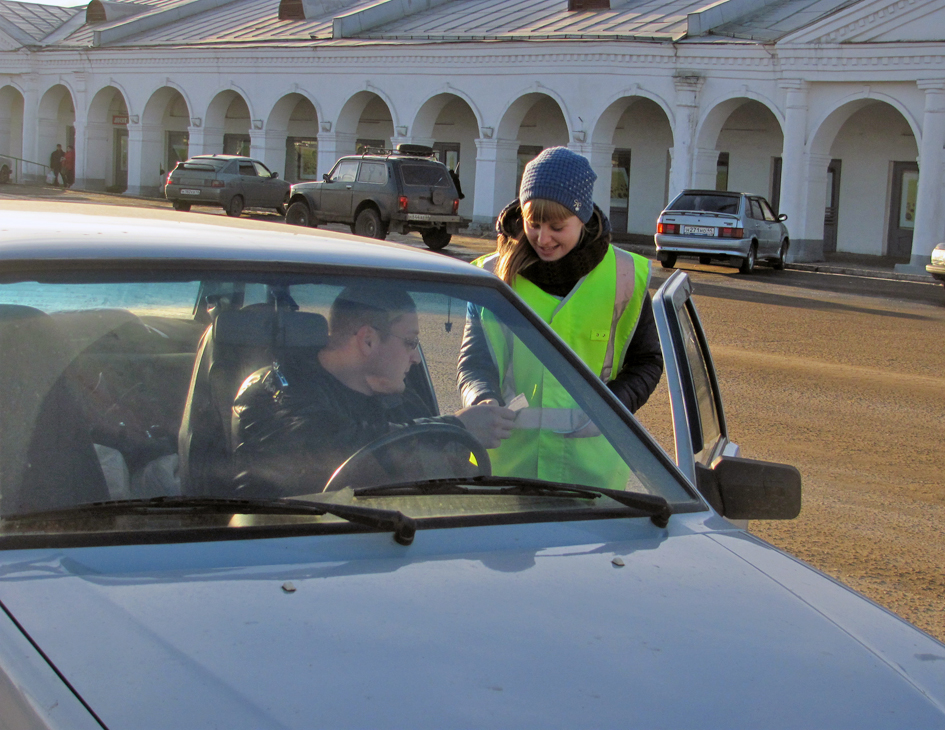 Останавливая автомобили, они вручали водителям памятки, желая им счастливого пути и безопасности на дорогах. Третье воскресенье ноября Всемирный день памяти жертв ДТП. За последние четыре года в нашем городе и районе погибли 18 человек и 159 пострадали от травм, полученных в дорожно-транспортных происшествиях. Об этом как раз и рассказывали листовки-напоминания, которые раздавали девятиклассницы школы № 4 Дарья Кузьмичева, Екатерина Игошева, Ксения Плошкина и Полина Пестрякова. Поддержала своих учеников и вожатая Ирина Николаевна Смирнова. Инспектор ДПС лейтенант полиции Андрей Малышев и старший инспектор ГИБДД капитан полиции Владимир Евсиков контролировали ситуацию на дороге, помогая девушкам в акции.