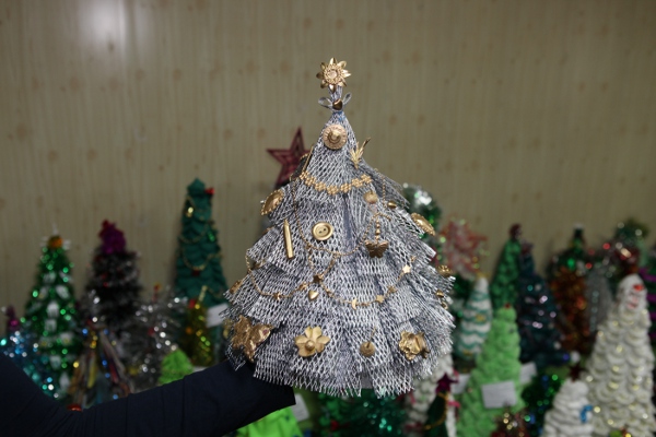 Из макарон и леденцов, из семечек тыквы и шишек, из дерева и бересты, из бисера и железа, из газетной бумаги и пластилина, из ложек и вилок… Такие вот бывают — елки. Если вам известно только два варианта новогодних красавиц: настоящая, из леса, и искусственная, из супермаркета, — значит, вы пока еще не побывали на выставке конкурсных работ «Зеленая красавица» в Доме детства и юношества. А мы — побывали и такого там насмотрелись!