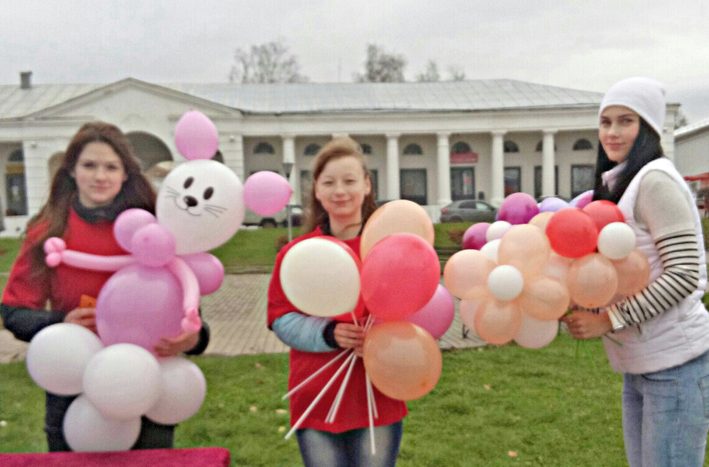 Погода менялась в течение этих двух часов постоянно: то выглядывало солнце и затихал холодный ветер, то его порывы с новой силой напоминали о настоящей некомфортной осени. Но ничего не менялось на площади. Активно работали молодёжь и добровольцы, стараясь раскрасить этот важный для всех день цветами и поделками из воздушных шаров, улыбками, вниманием к каждому.