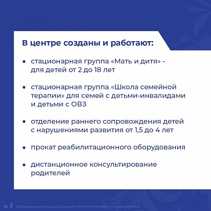 Какие центры в Костромской области оказывают раннюю помощь особым детям, смотрите в карточках.