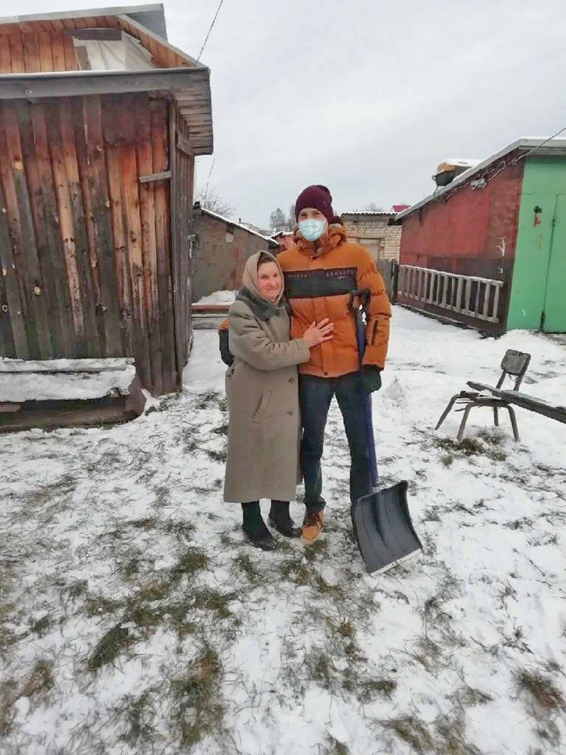 Несколько лет ребята помогают одинокой пенсионерке. С домашним хозяйством женщина потихоньку управляется сама, весной даже сажает рассаду в небольшом огородике. Но вот на расчистку двора от снега зимой у бабушки сил не хватает. На помощь приходят волонтеры. Вот и в дни январских снегопадов Нине Ивановне вызвался помочь один из активных участников отряда Даниил Чистяков.