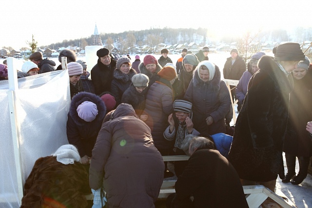 В праздник Крещения вода освящается по особому чину – великим Иорданским освящением. Во Введенском храме 18 и 19 января прошло Великое освящение воды. После Крестного хода к Иордани на Галичском озере прихожане имели возможность омыться в крещенской воде.