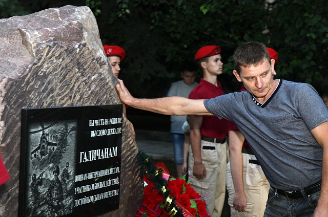 Десятки галичан пришли вечером 11 августа к мемориальному камню, установленному в знак уважения и благодарности галичанам, участникам военных конфликтов. Этот день, уже четвертый, в нашей области отмечен в календаре как день Памяти земляков, погибших в боевых действиях. Галичане второй год подряд собираются в этот день у особого памятного знака