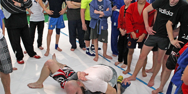 var metaslider_5239 = function($) { $('#metaslider_5239').addClass('flexslider'); // theme/plugin conflict avoidance $('#metaslider_5239').flexslider({ slideshowSpeed:3000, animation:"fade", controlNav:true, directionNav:true, pauseOnHover:true, direction:"horizontal", reverse:false, animationSpeed:700, prevText:"<", nextText:">", slideshow:true }); }; var timer_metaslider_5239 = function() { var slider = !window.jQuery ? window.setTimeout(timer_metaslider_5239, 100) : !jQuery.isReady ? window.setTimeout(timer_metaslider_5239, 1) : metaslider_5239(window.jQuery); }; timer_metaslider_5239(); В прошедшие выходные на базе клуба «Ристал» был проведен мастер-класс под руководством главного тренера Московской областной федерации ММА (бои без правил), главного тренера профессиональной команды GOLDEN TEAM Владимира Осия и чемпиона России и Мира, победителя Различных Всероссийских турниров по боевому самбо, чемпиона Московской области по ММА, чемпиона первого исторического чемпионата России и первого исторического чемпионата Европы по боям без правил Магомеда Исмаилова. В течение двух дней спортсмены обучали галичских и костромских парней тактике и технике ведения боя в стойке и партере, а в завершение мастер-класса участникам выпала возможность помериться силой с Магомедом Исмаиловым, так сказать, «прикоснуться к легенде». И хотя желающих было много, но одолеть чемпиона так никто и не смог. Также была организована фотосессия с раздачей автографов, по завершению которой стало ясно, что число болельщиков у Магомеда выросло, как минимум, на шестьдесят человек.