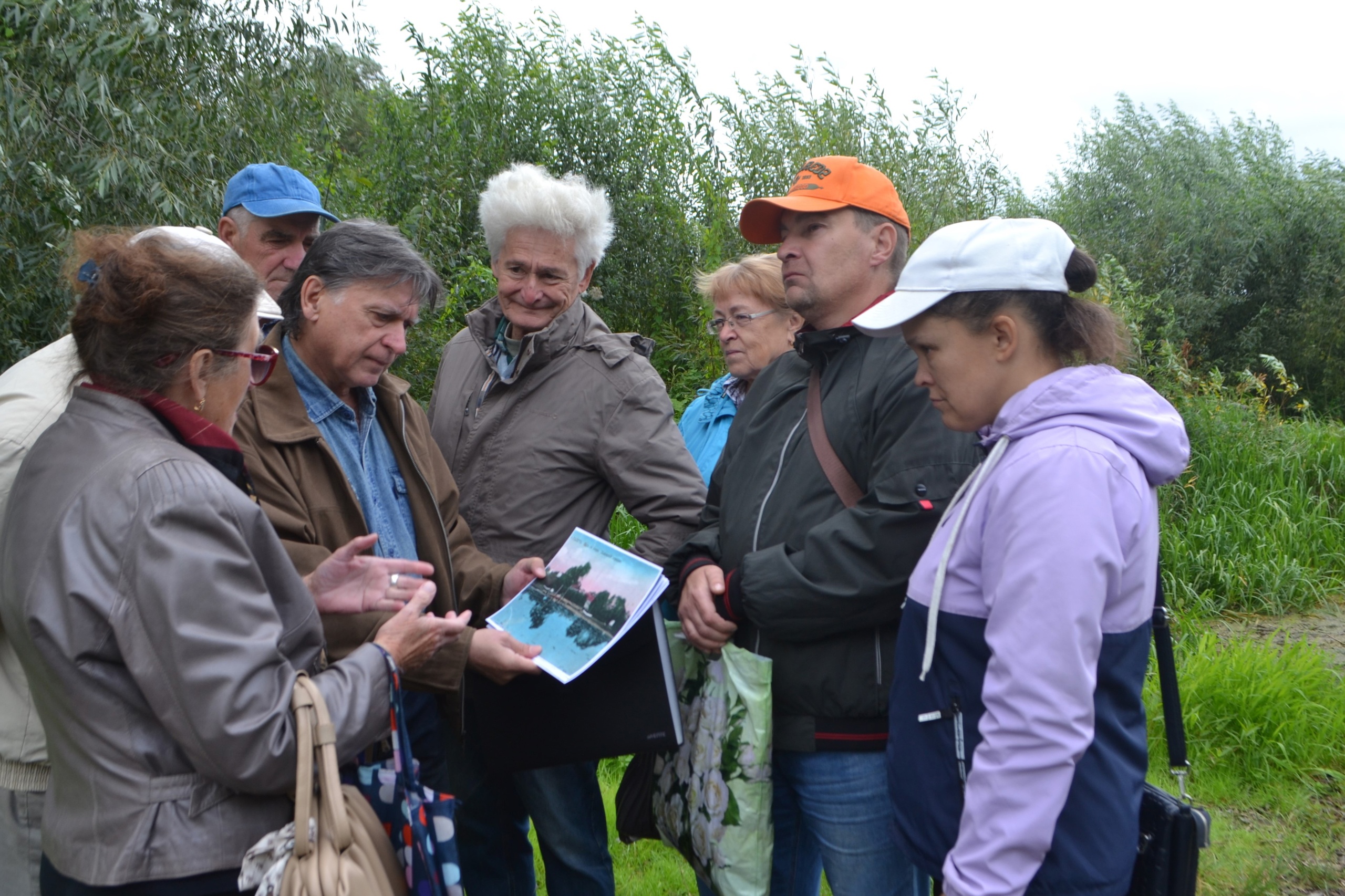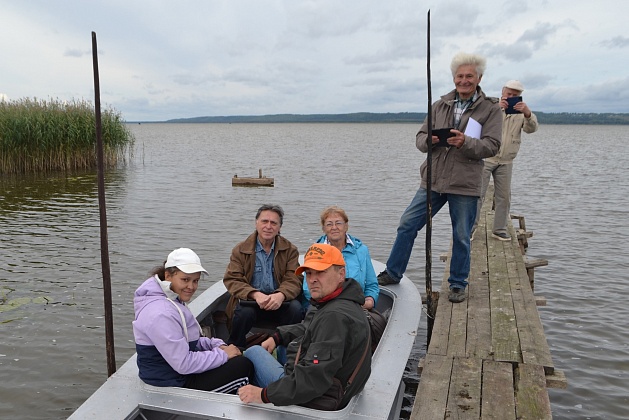 Участники мероприятия подошли к месту пристани у Староторжского монастыря, где причаливали «Тихвинки» (длиной около 18 м и шириной – 4,5 м), на которых купцы возили свои товары даже в Нижний Новгород.Андрей Маркович Моргунов, потомок владельцев другого перевоза, встретил нас у Рыбной слободы, показав свой чудесный участок на берегу озера и рассказав о предках, об их лодках и о старой плате за перевоз.