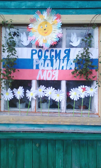 В яркую поздравительную открытку в День России превратились окна Углевского сельского дома культуры.