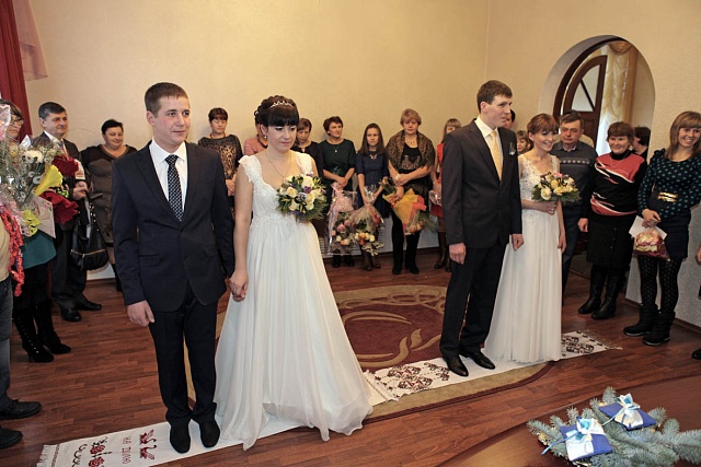 Що буде любити від вінця довіку.Именно по этому сценарию, записанному сотни лет назад в мелодичных строчках украинским народом, все и происходило в тот день – 17 января – в Галичском ЗАГСе: самые важные в своей жизни слова «объявляю вас мужем и женой» две пары молодых услышали, стоя на расшитых яркими узорами украинских свадебных рушниках. А все потому, что оба жениха и одна из двух невест, сочетавшихся браком в тот день, родились и выросли в красивой, богатой и песенной стране – в Украине. И только вторая невеста – галичанка.