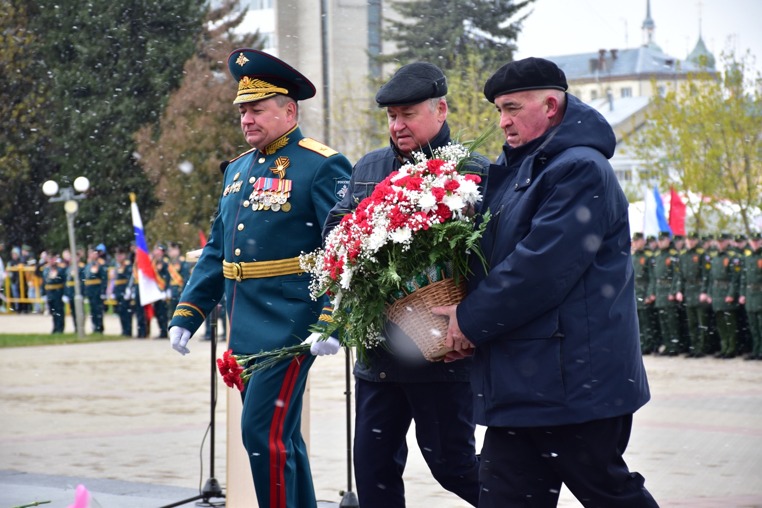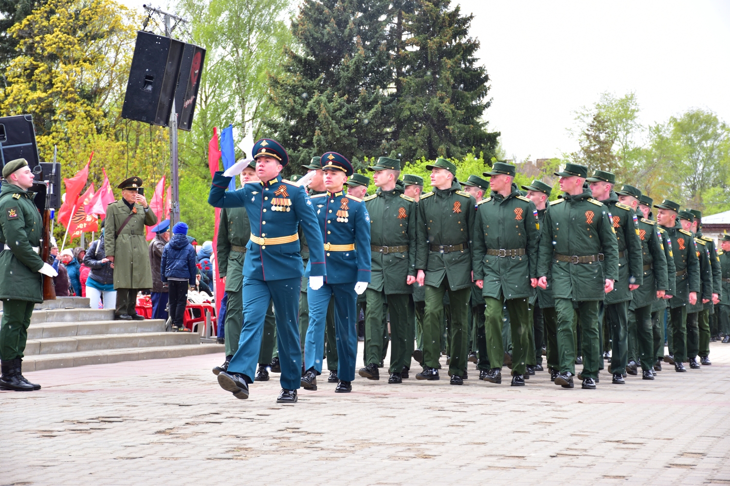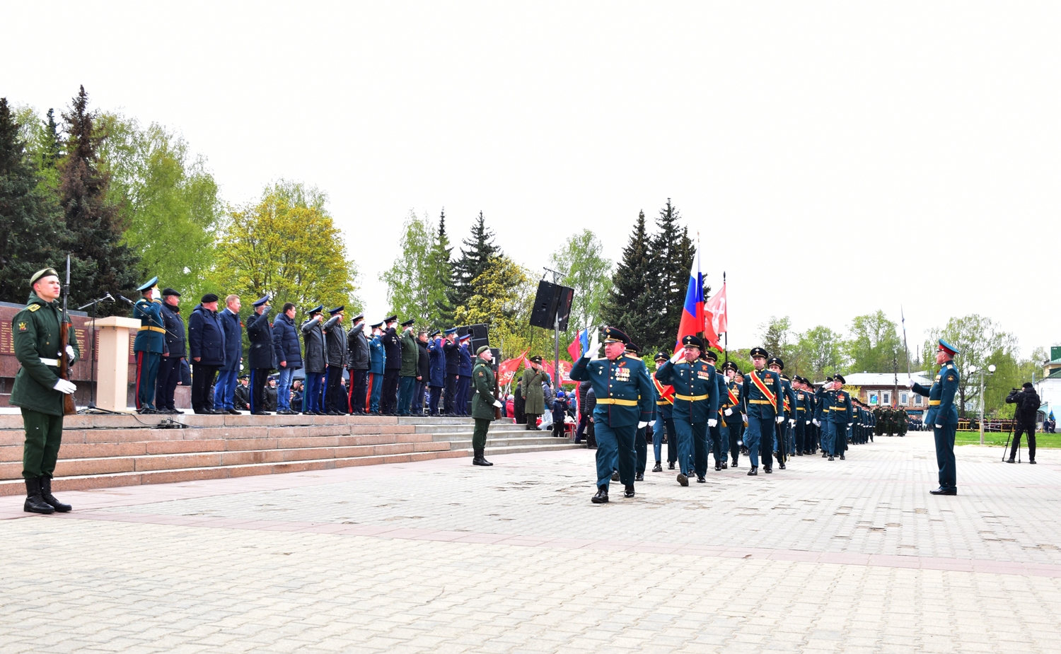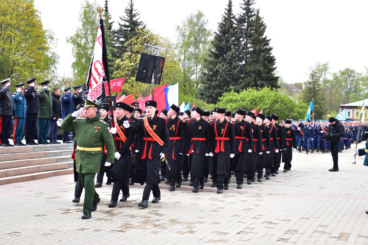 По окончании митинга на площади Мира торжественным маршем прошли офицеры и курсанты Военнной академии РХБ защиты, знаменная группа 331-го гвардейского парашютно-десантного ударного Костромского полка и 1065-го гвардейского артиллерийского полка, юнармейцы, воспитанники областного кадетского корпуса, участники детских и молодежных патриотических клубов, классов, общественных объединений, сотрудники регионального управления МЧС.