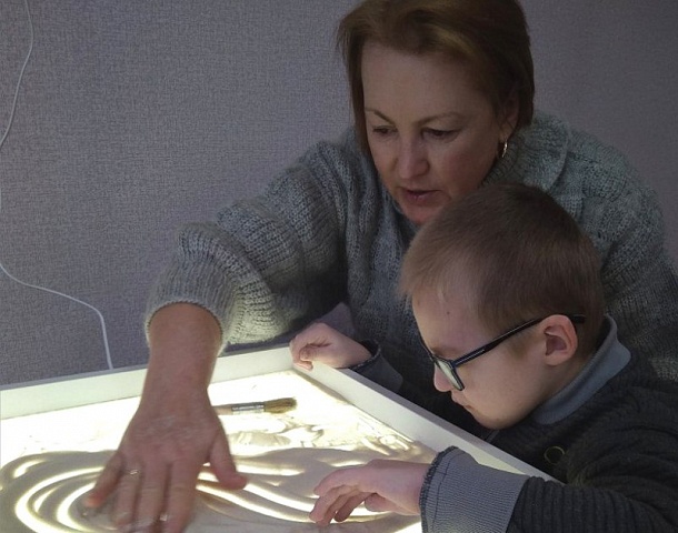 Удивительный мольберт, где вместо холста - стекло с подсветкой, а вместо красок - кучка светлого кварцевого песка, появился на дневном отделении Центра социального обслуживания в конце прошлого года. Свои «серебряные» сказки на нем рисуют детишки, которым недуг ограничил возможности рисовать вместе со сверстниками, петь вместе с ними веселые песенки и гонять мяч на лужайке дружной шумной ватагой.