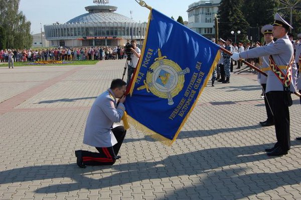 Это уже третье торжественное вручение знамени за историю областного УМВД. Символ службы меняется в случаях переименования или обновления геральдики министерства.