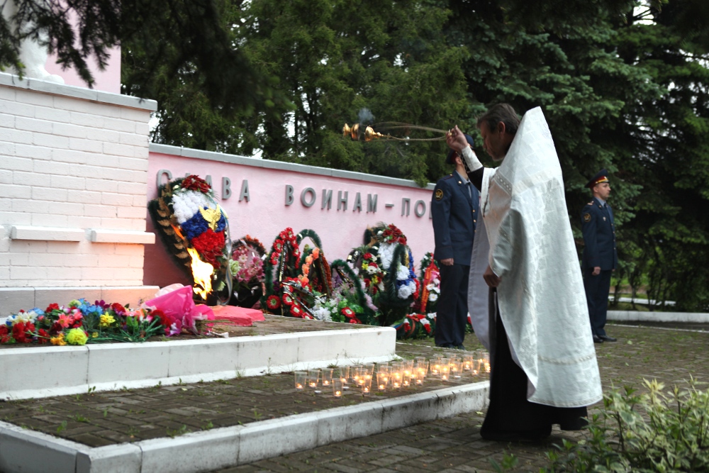 Панихиду по погибшим воинам отслужил настоятель Богоявленского храма отец Андрей.